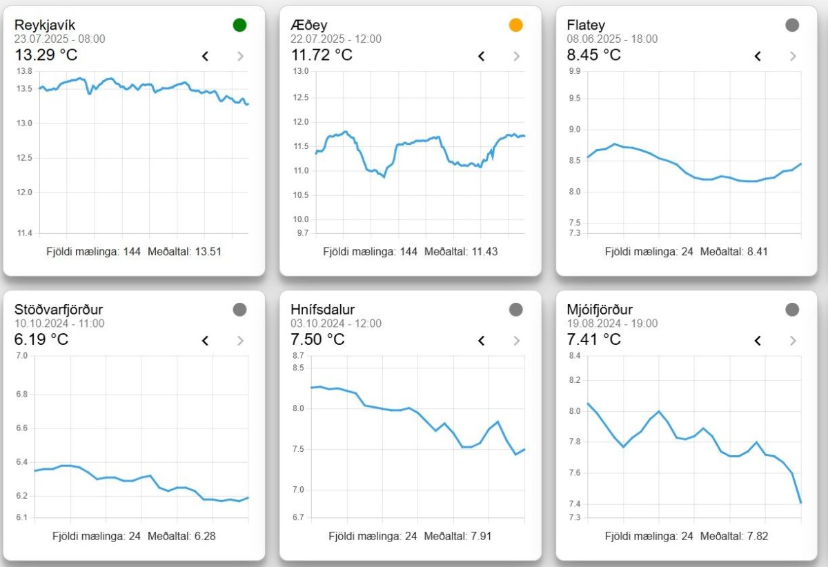 A new webpage on sea temperature has been launched on the Marine and Freshwater Research Institute's website. The page contains a new presentation of data from sea temperature gauges that measure sea temperature in ports in various locations around the country. The goal was to make the site more accessible to the general user and to display data from active gauges in a clearer way.