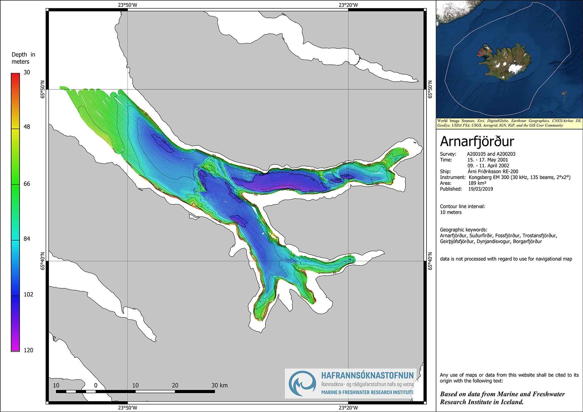 Post-processing: Raw data was processed and gridded in Caris HIPS & SIPS software with 10 x 10 m grid cell size in ISN2004 projection.