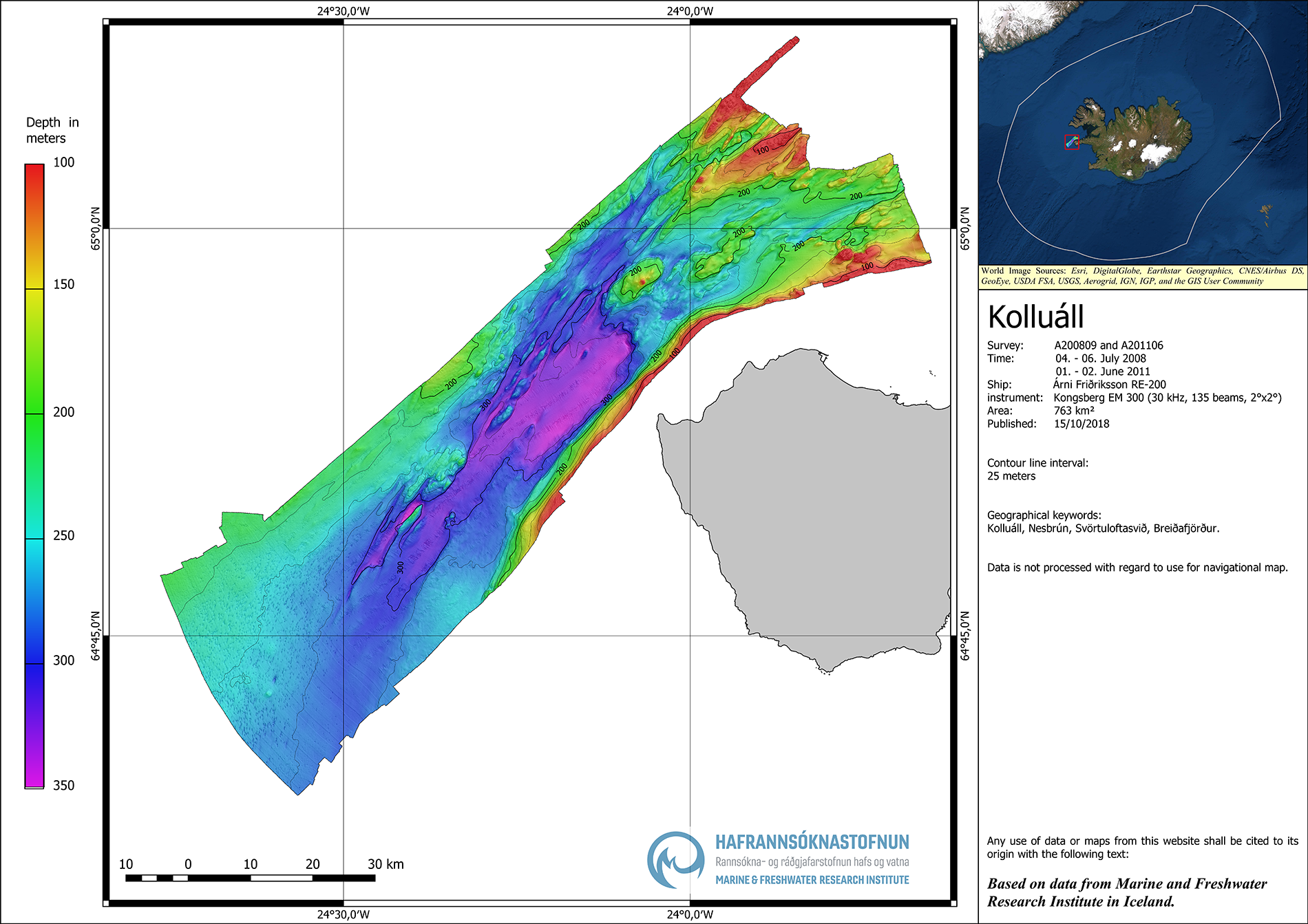 Post-processing: Raw data is processed and gridded in Caris HIPS & SIPS software with 20 x 20 m cell size in ISN2004 projection.