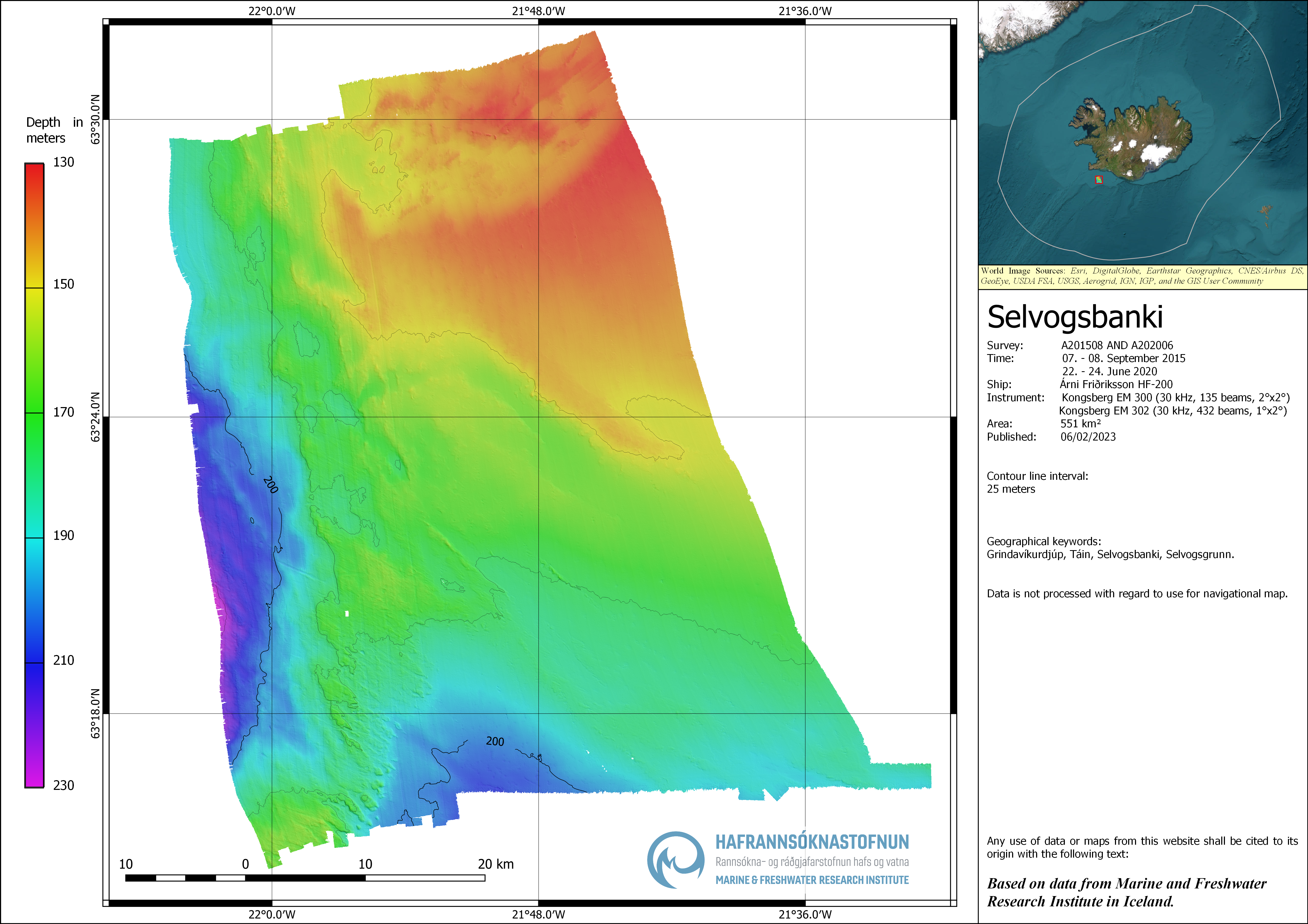 Post-processing: Raw data was processed and gridded in Caris HIPS & SIPS software with 10 x 10 m grid cell size in ISN2004 projection.