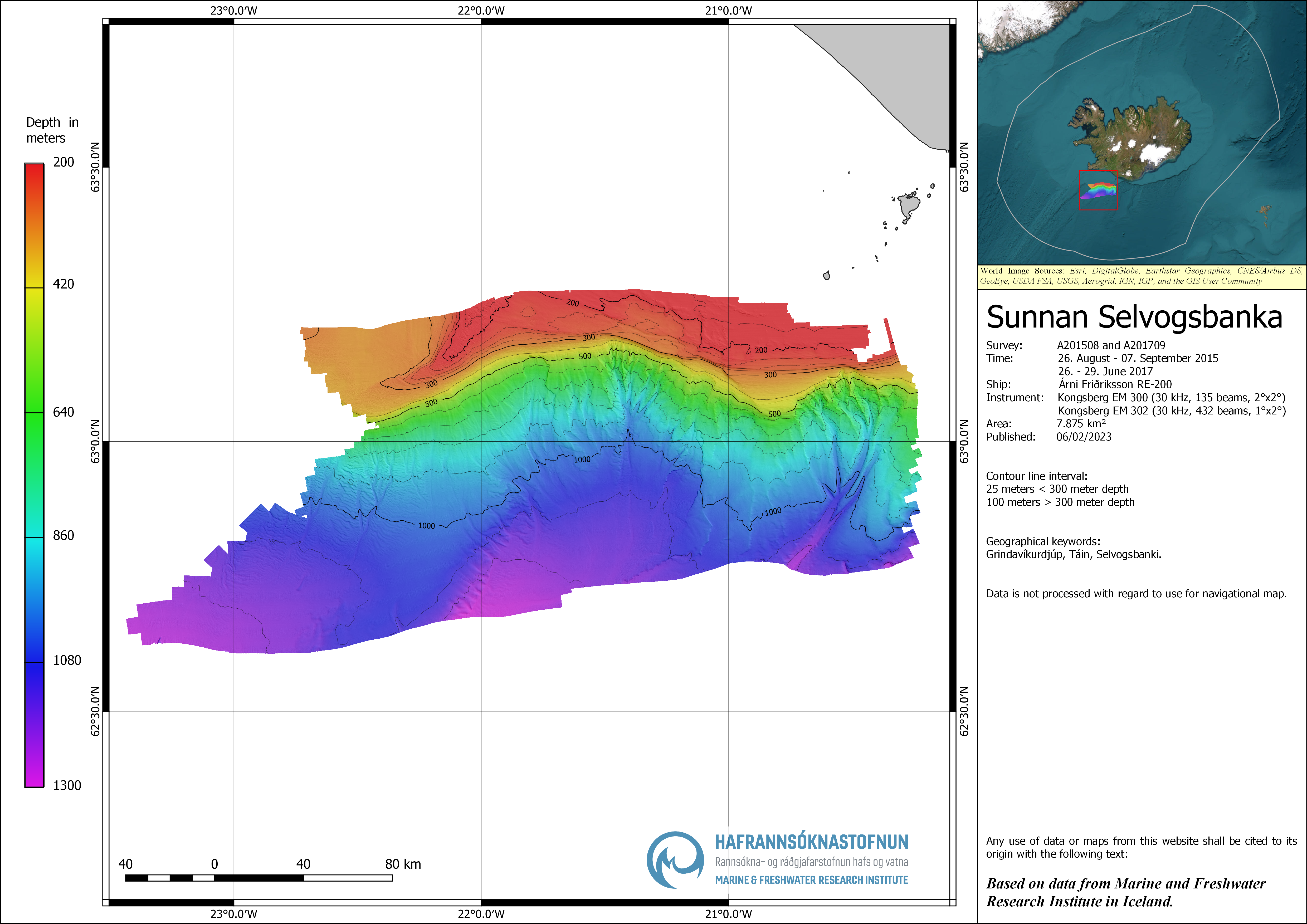 Post-processing: Raw data was processed and gridded in Caris HIPS & SIPS software with 20 x 20 m grid cell size in ISN2004 projection.