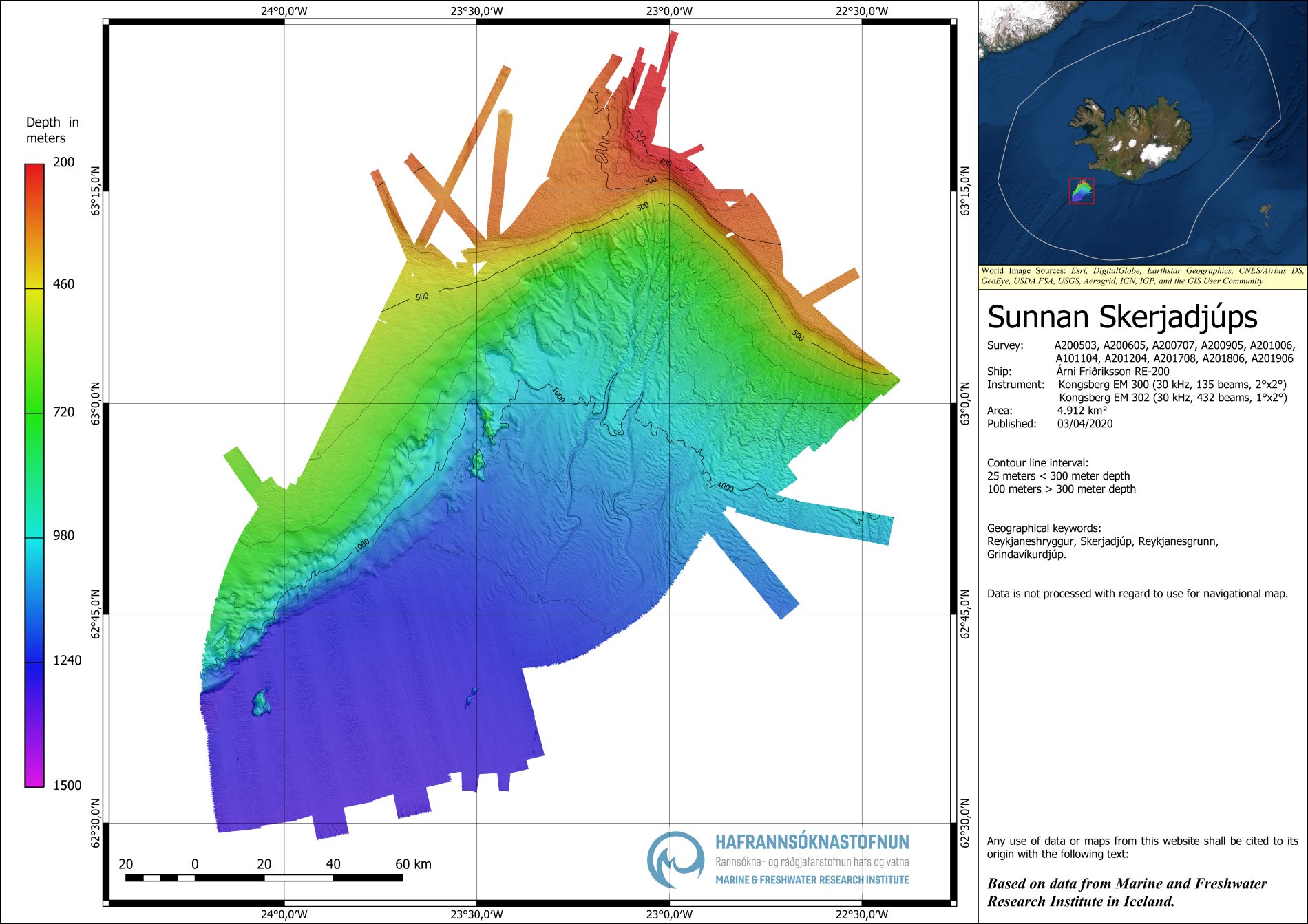 Post-processing: Raw data was processed and gridded in Caris HIPS & SIPS software with 20 x 20 m grid cell size in ISN2004 projection.