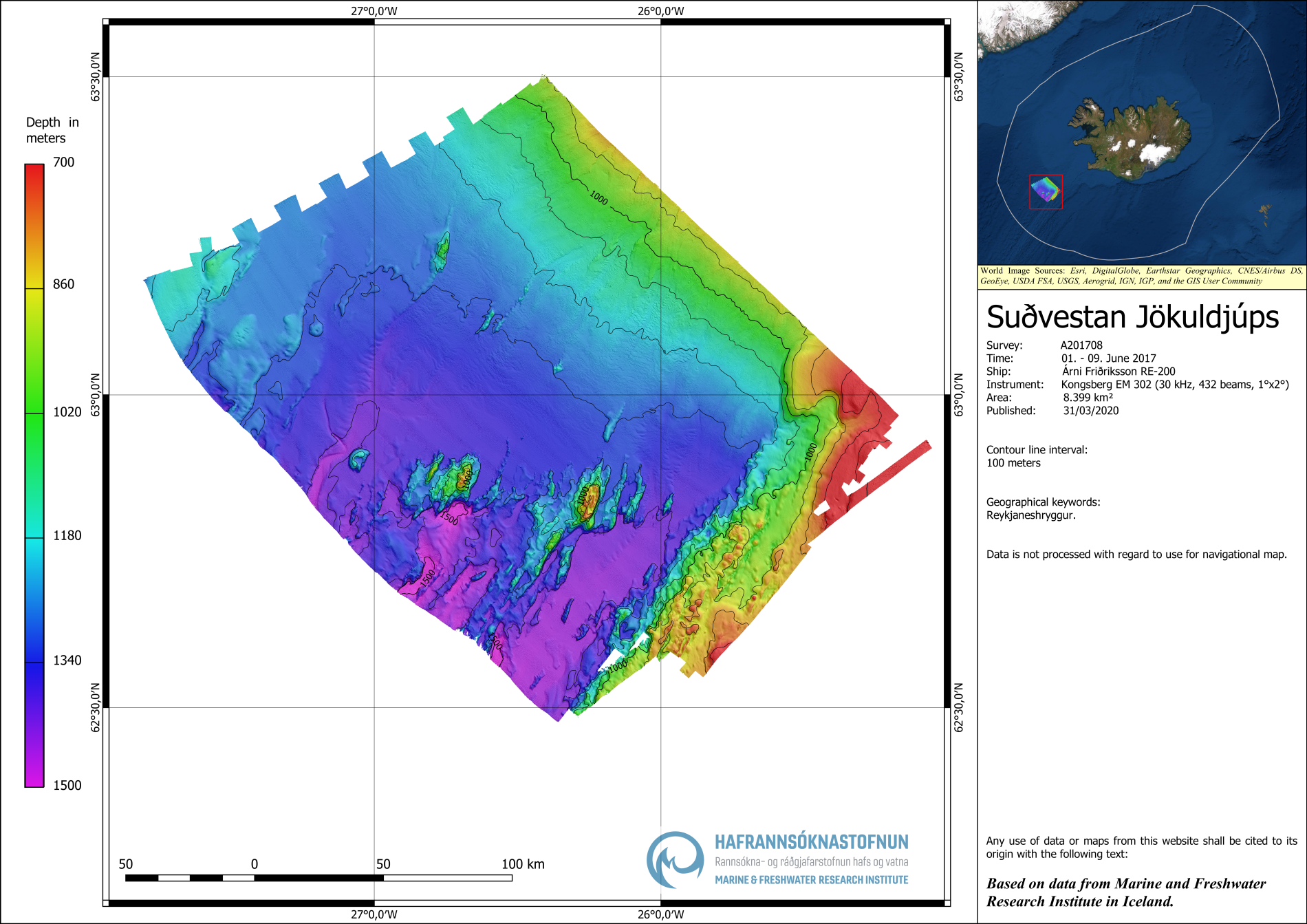Post-processing: Raw data was processed and gridded in Caris HIPS & SIPS software with 20 x 20 m grid cell size in ISN2004 projection.