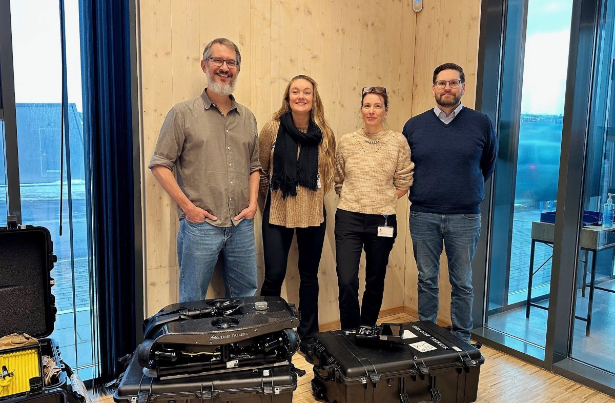 Hér eru sjávarlíffræðingarnir Julian Burgos, Bylgja Sif Jónsdóttir og Steinunn Hilma Ólafsdóttir kam… Hér eru sjávarlíffræðingarnir Julian Burgos, Bylgja Sif Jónsdóttir og Steinunn Hilma Ólafsdóttir kampakát aftan við nýja djúpkannann sem á eftir að bæta mikilli þekkingu við djúpsjávarrannsóknir hérlendis. Lengst til hægri er Valdimar Karl Kristinsson frá Slippnum á Akureyri sem er umboðsaðili Deep Trekker á Íslandi.