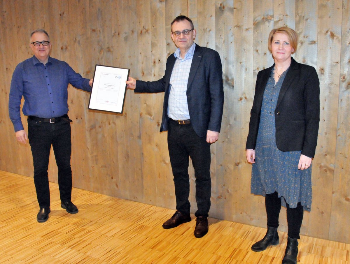 Mynd með frétt er frá viðtöku jafnlaunavottunar. Frá vinstri eru: Sigurður M. Harðarson, eigandi iCert og samræmingarstjóri úttekta, Sigurður Guðjónsson, forstjóri Hafrannsóknastofnunar og Berglind Björk Hreinsdóttir, mannauðsstjóri Hafrannsóknastofnunar