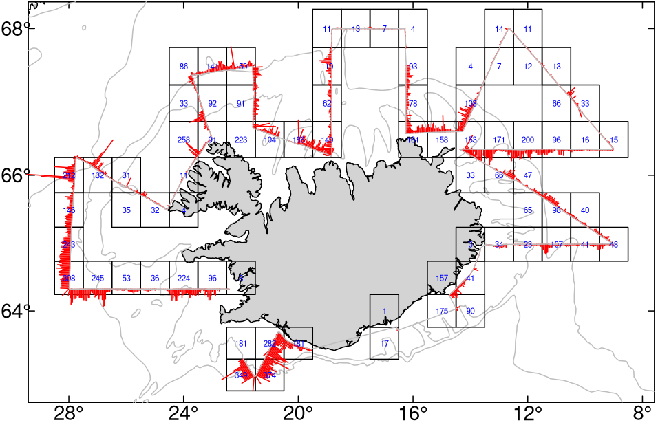 Frá því um 1950 hafa verið gerðar athuganir á umhverfi og grunnþáttum vistkerfisins að vori eða í byrjun sumars. Mælistöðvarnar mynda línur eða snið út frá landinu. Flestar mælistöðvarnar eru nefndar eftir kennileitum á landi. Sjórannsóknir lýsa athugunum nánar.