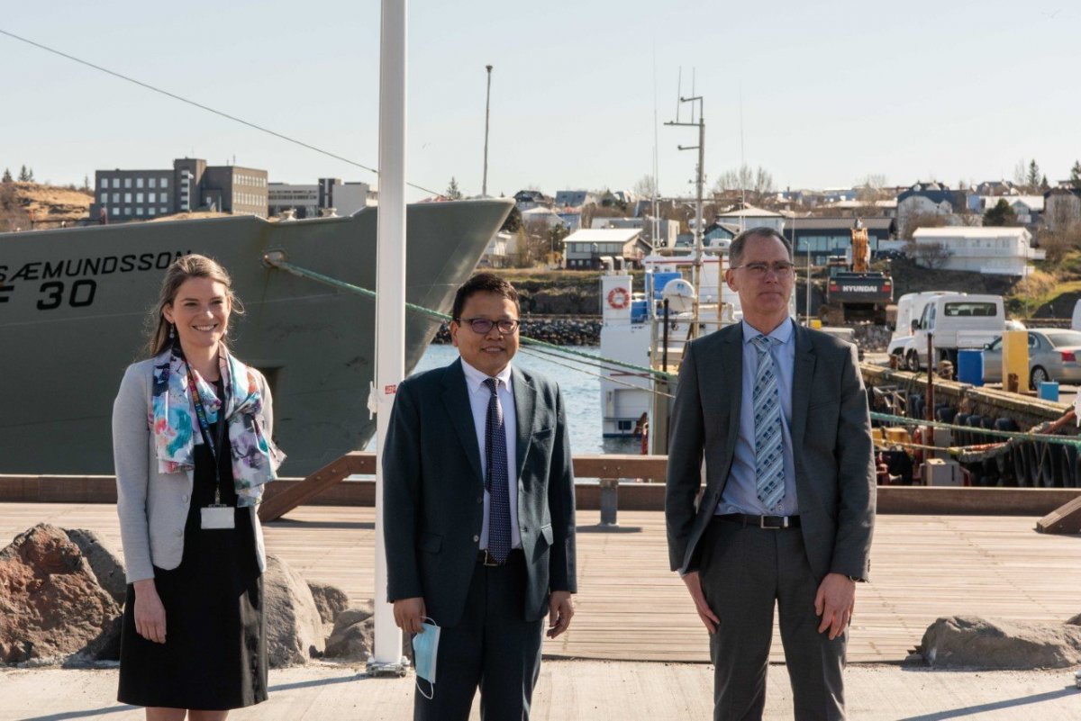 Forstjóri Hafrannsóknastofnunar, Þorsteinn Sigurðsson, tók á móti sendiherranum ásamt Guðmundi Þórðarsyni sviðsstjóra Botnssjávarsviðs og Mary Francis Davidson, aðstoðarforstöðumanni Sjávarútvegsskóla GRÓ-UNESCO en stofnunin hýsir starfsemi skólans.