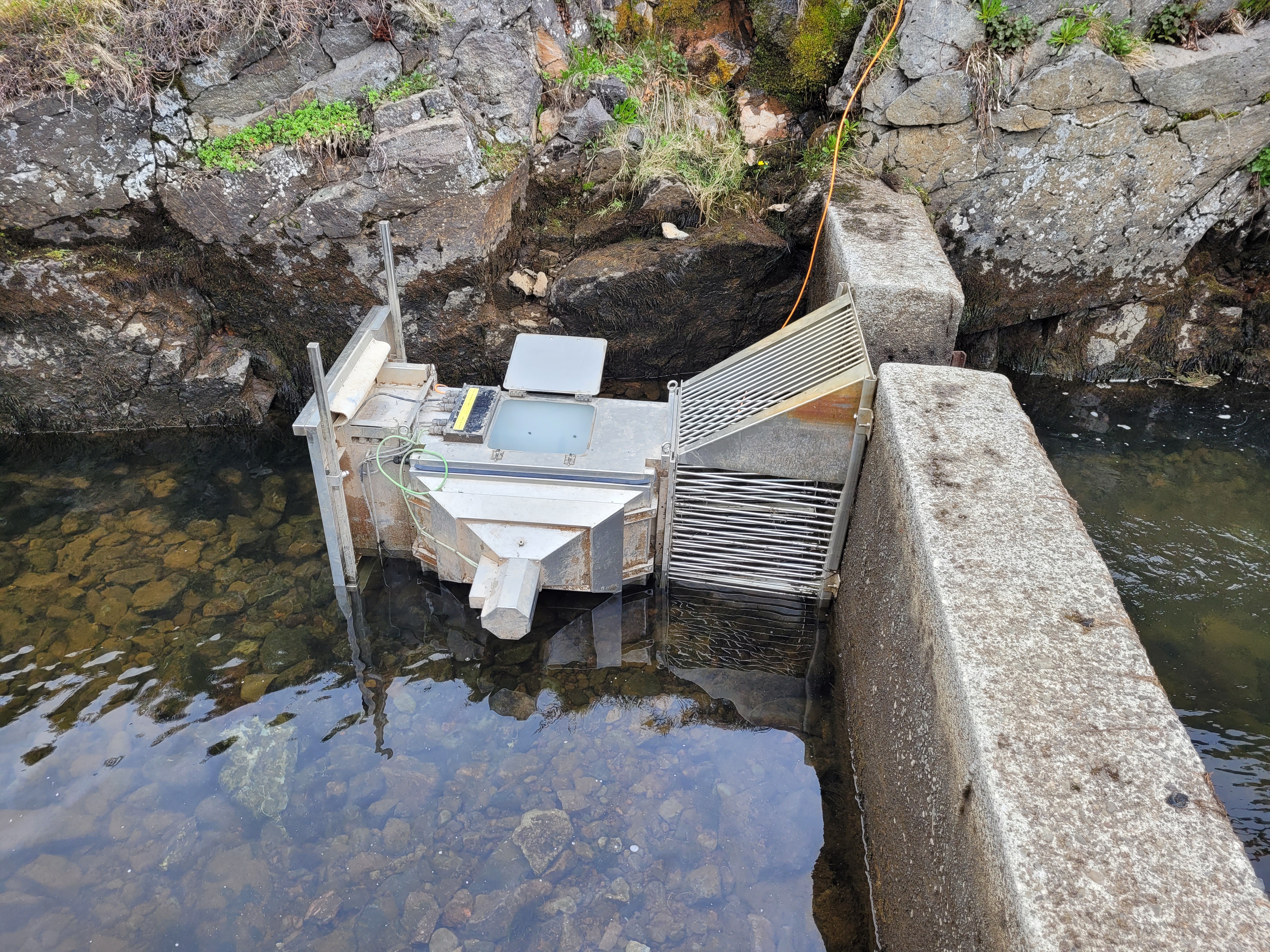 Í liðinni viku unnu sérfræðingar Hafrannsóknastofnunar við að koma fyrir laxateljara í fiskveginn við Einarsfoss í Laugardalsá við Ísafjarðardjúp. Teljarinn er búinn myndavél sem tekur myndir af fiskum sem ganga í ána.