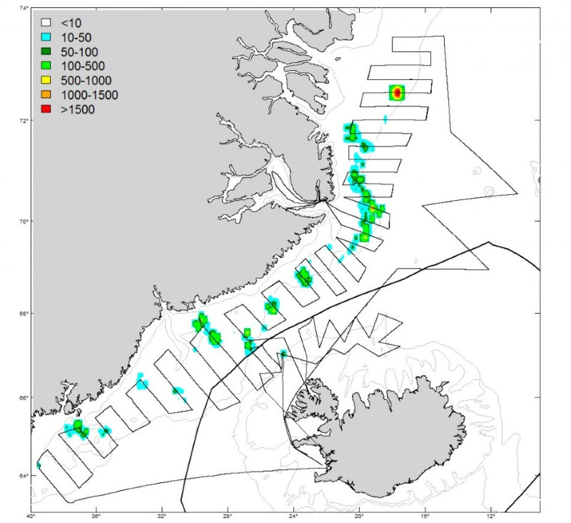 Fullorðin loðna fannst víða í köntum og á landgrunni við Austur Grænland, í Grænlandssundi að landgrunnsbrúninni út af Vestfjörðum, en engin loðna fannst með landgrunnsbrún norðan Íslands. Lóðningar voru einnig yfirleitt mjög gisnar og einungis mældust 137 þúsund tonn af kynþroska loðnu. Eins og kunnugt er bentu mælingar á ungloðnu haustið 2015 til þess að veiðistofninn á komandi vertíð yrði lítill og í samræmi við samþykkta aflareglu var ákveðið að engar veiðar yrðu stundaðar nema mælingar haustsins 2016 gæfu tilefni til endurskoðunar. Mælingar undanfarinna vikna á stærð loðnustofnsins staðfesta þær vísbendingar.