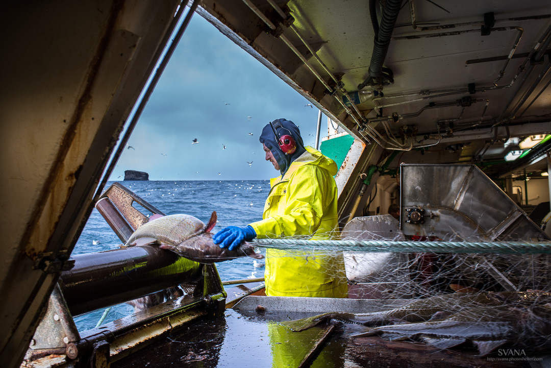 Sérlega vel heppnuð mynd sem fangar vel lífið og störfin um borð í einum svip. Sjómaðurinn er miðpunktur, bæði fyrir sterkan lit sjóklæðanna og ekki síður af því hann er skemmtilega rammaður inn af opnum hleranum.