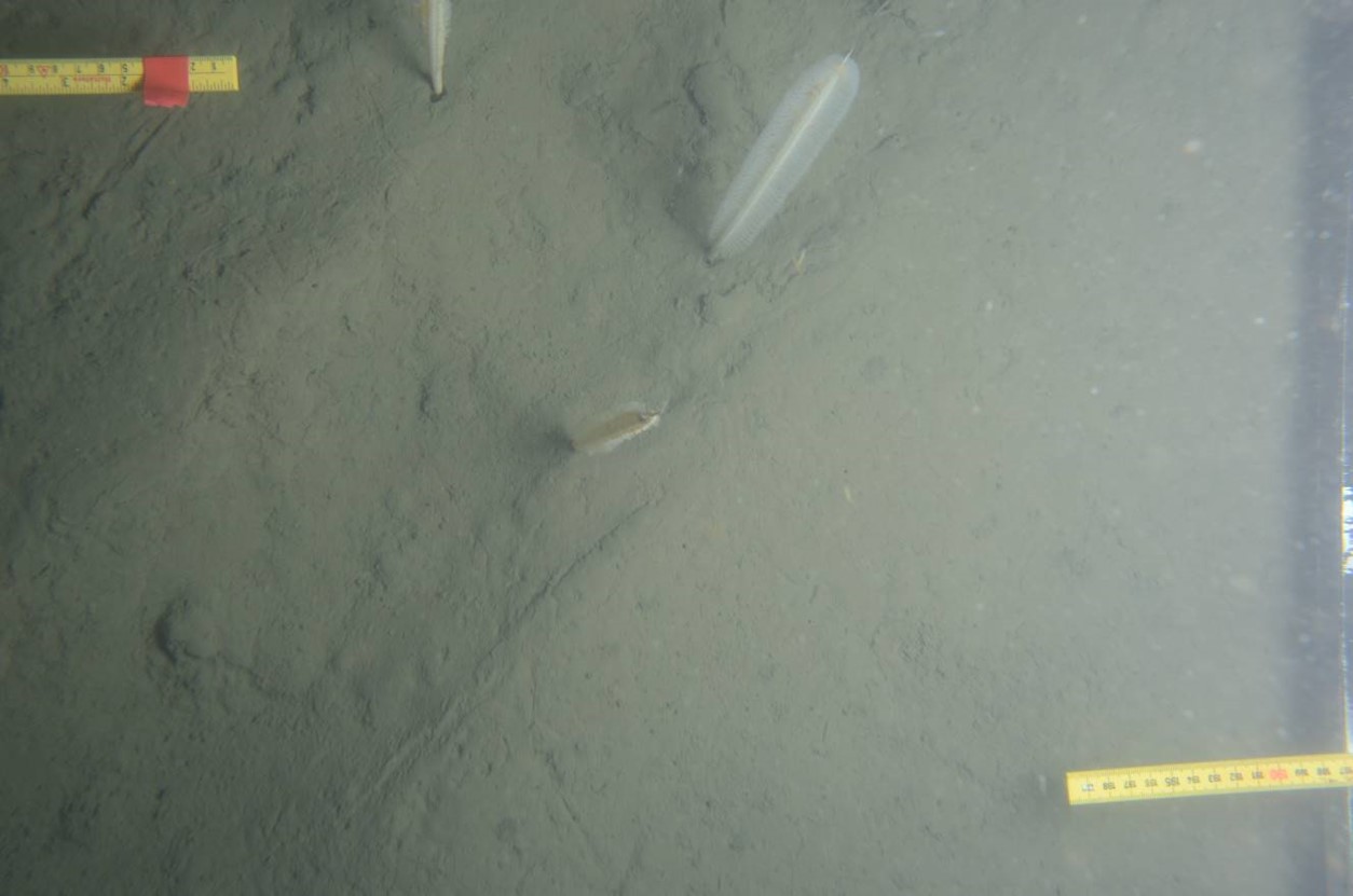 Alls voru 83 hópar/tegundir greindir í botnsetinu og 53 af ljósmyndum. Af þeim tegundum sem dvelja ofan í botnsetinu voru burstaormar algengastir. Þeir eru mjög algengir í mjúki seti á mismunandi svæðum og dýptarbilum en þeir hafa mikla aðlögunarhæfni. Slöngustjörnur voru algengastar af þeim tegundum sem lifa ofan á botnsetinu en einnig sáust rækjur á um helming stöðvanna (2. mynd). Á ljósmyndum sjást stærri lífverur eins og sæfjaðrir (3. mynd). Ekki fannst neinn munur í samfélögum á milli svæða.