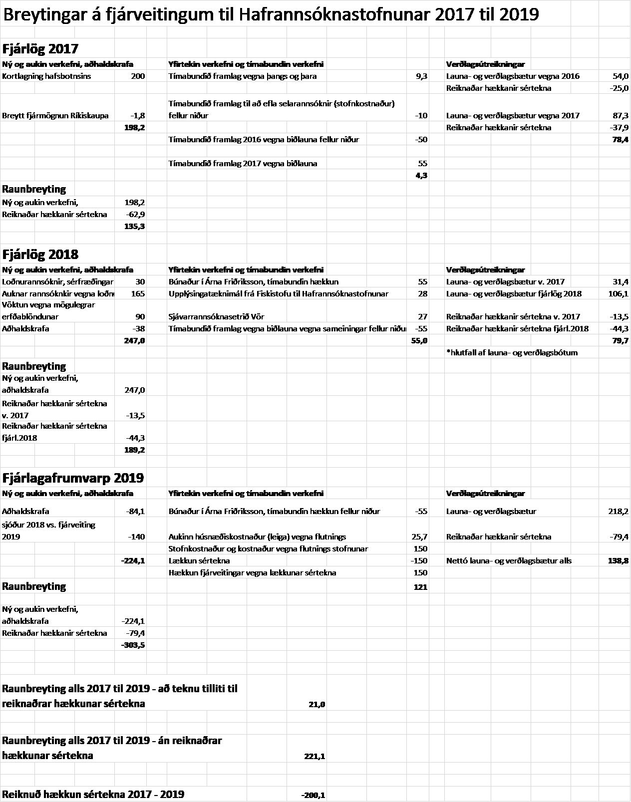 Tafla 3 – Breytingar fjárveitinga 2017-2019