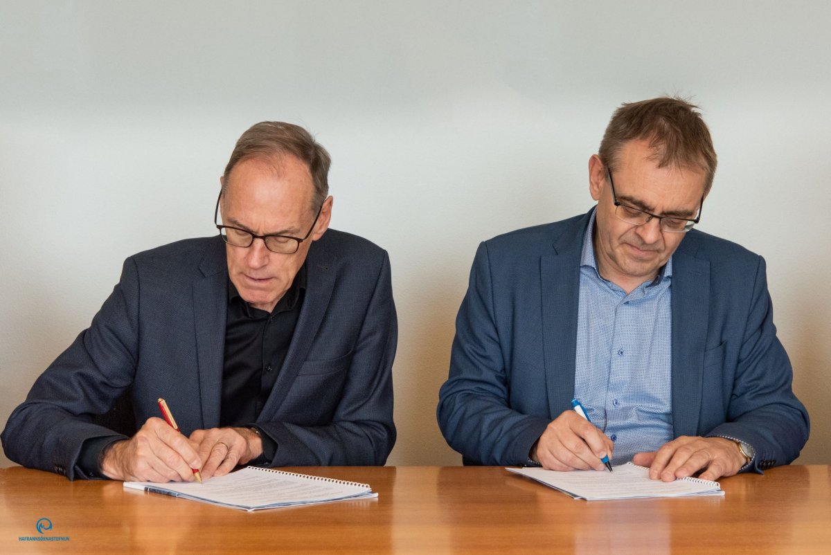 Ragnar Davíðsson sviðsstjóri þjónustu hjá Ríkiskaupum og Sólmundur Már Jónsson sviðstjóri mannauðs og rekstrar hjá Hafrannsóknastofnun voru viðstaddir undirritunina.