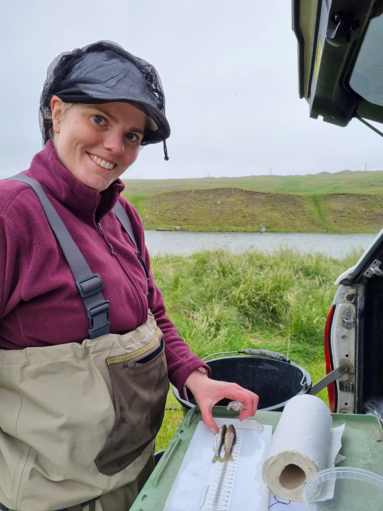 Fjóla Rut Svavarsdótttir starfar sem líffræðingur á Ferskvatns- og eldissviði Hafrannsóknastofnunar. Aðrar myndir af Fjólu Rut á síðunni eru af henni í "feltinu" eins og það er kallað eða rannsóknaferðum.