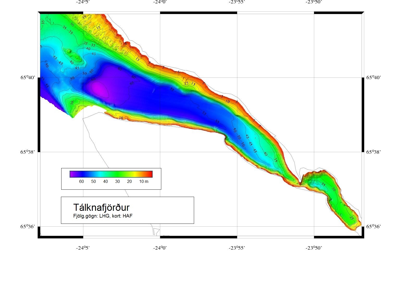 Fjölgeisladýptarkort af Tálknafirði.