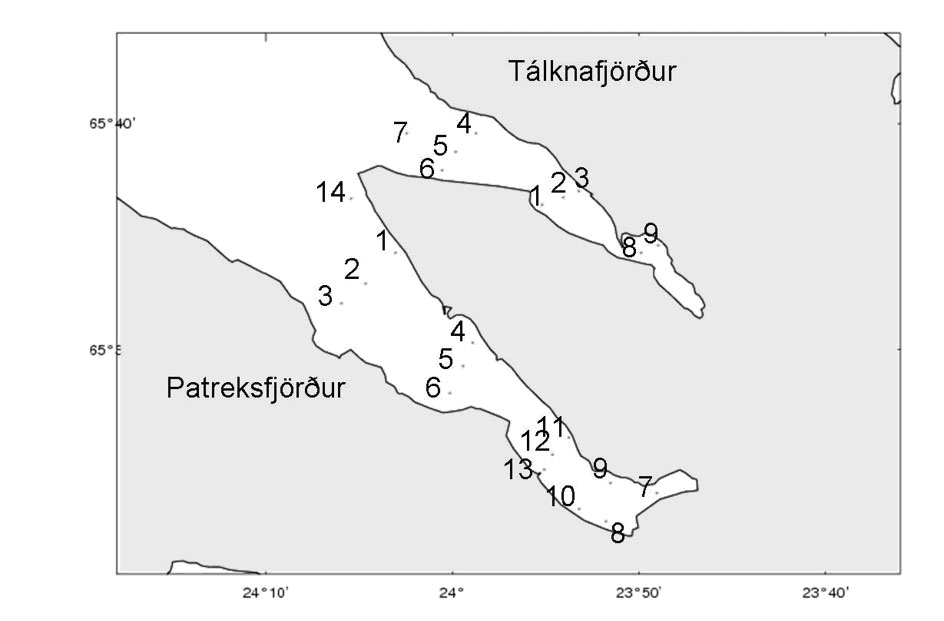 1. mynd. Sýnatökustaðir í Tálknafirði og Patreksfirði.