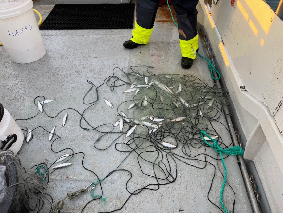 Veiðarnar sýndu að brislingur var ríkjandi í lóðningunum. Í fyrri netalögninni, þar sem notuð voru net með bæði stórum og litlum möskvum, veiddust aðeins nokkrir brislingar. Í þeirri seinni, þar sem netið var eingöngu með smáum möskvum, veiddust um 60 brislingar (13-16 cm) og ein ýsa.