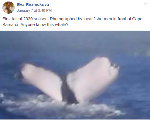 Fyrsti hvalur vetrarins við Cape Samana eyju í Dóminíska lýðveldinu sást og var ljósmyndaður þann 6. janúar s.l. af sjómanninum Leonardo Hernandez Balbuena. Myndinni deildi svo Eva Reznickova á Fésbókarsíðu tileinkaðri hnúfubökum sem Valerie Chosson starfmaður Hafrannsóknastofnunar vaktar einnig. Með samanburði við ISMN gagnagrunn stofnunarinnar (íslenski Megaptera novaengliae - íslenski hnúfubaks gagnagrunnurinn) gat hún, þrátt fyrir að upphaflega myndin væri fremur óskýr, greint að hér var á ferðinni hnúfubakur ISMN0122.
