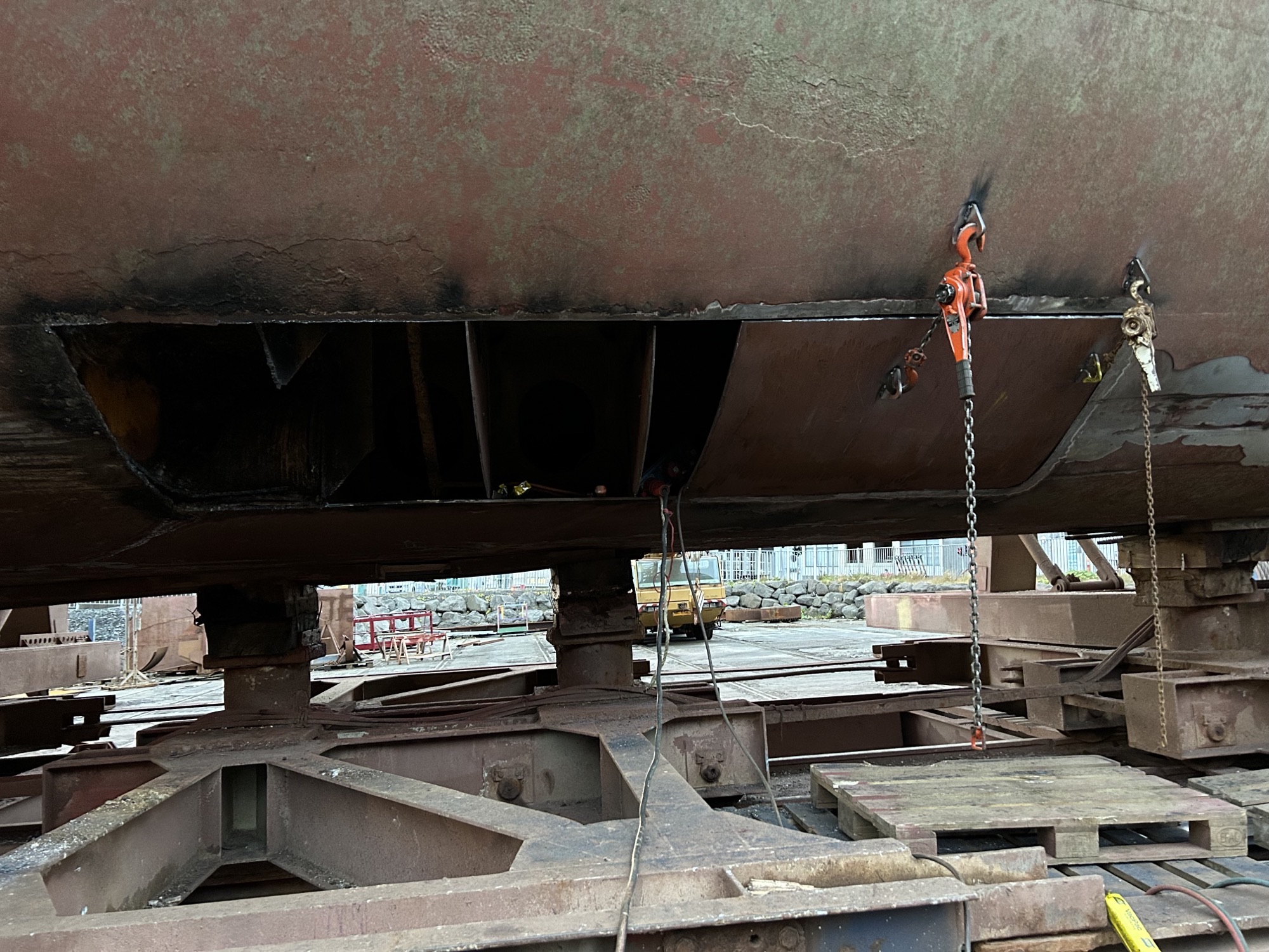 Svo heppilega vildi til að skipið komst í slipp í Reykjavík mánudaginn 25. september til viðgerða. Verkinu miðar vel, vinna við viðgerðir er hafin og útvegun varahluta er lokið.