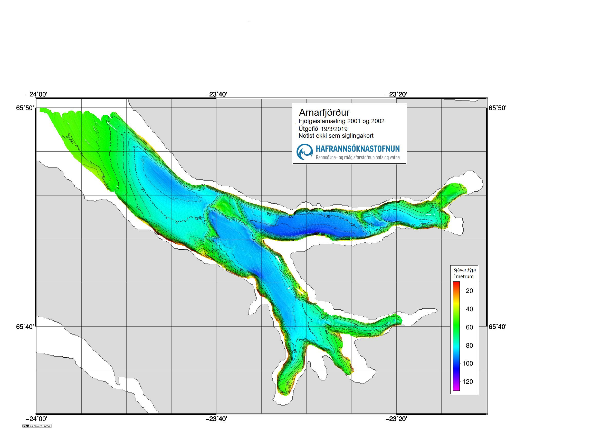 Heimilt er að birta fjölgeislagögn eða -kort sem fengin eru af þessari vefsíðu sé uppruna þeirra getið með eftirfarandi texta: Byggt á gögnum frá Hafrannsóknastofnun.