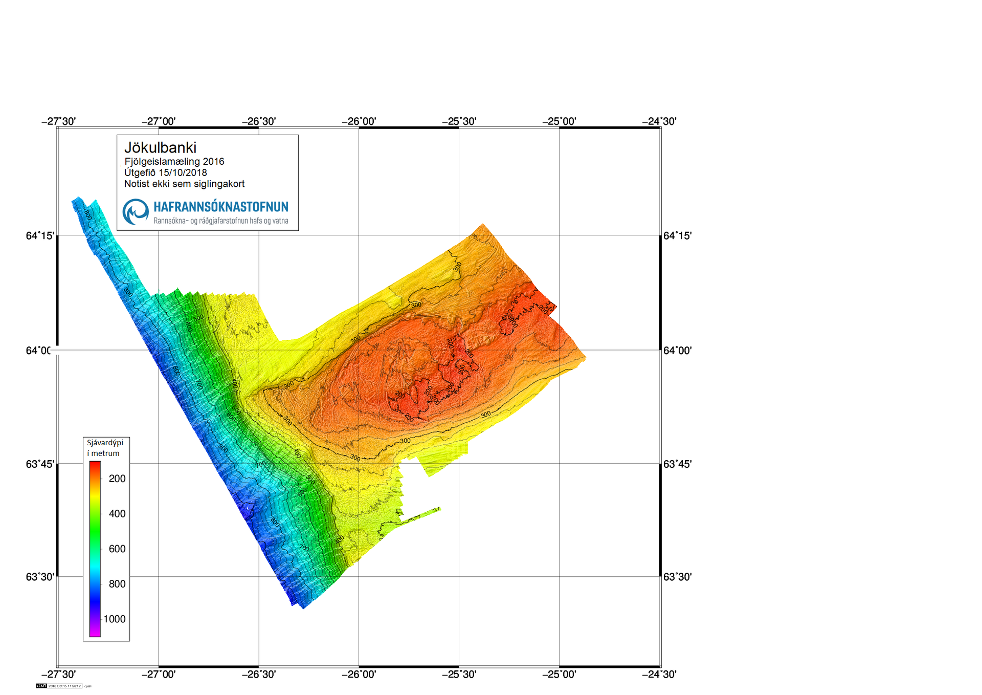 Heimilt er að birta fjölgeislagögn eða -kort sem fengin eru af þessari vefsíðu sé uppruna þeirra getið með eftirfarandi texta: Byggt á gögnum frá Hafrannsóknastofnun.