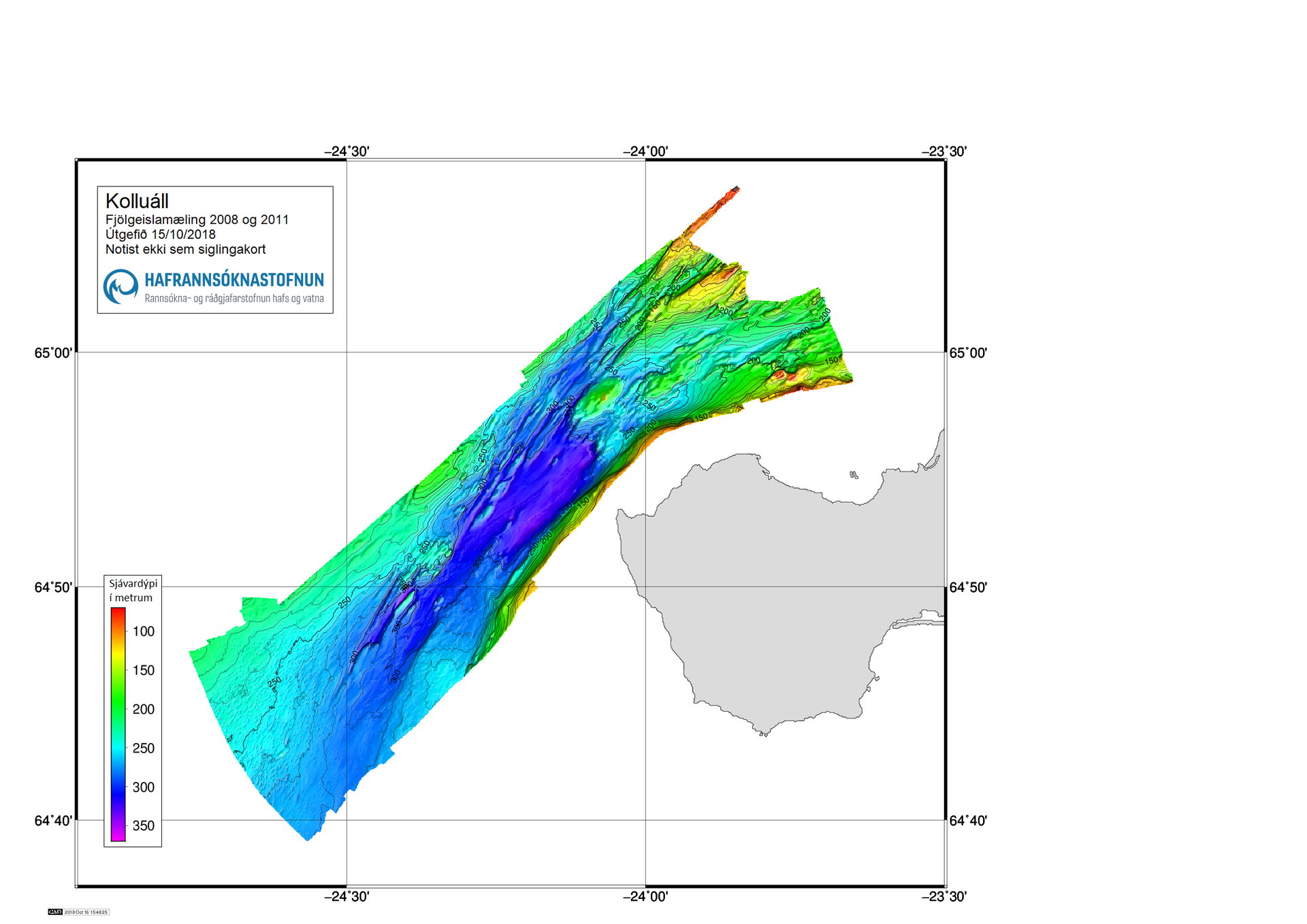 Úrvinnsla: Hreinsun fjölgeislagagna var gerð í Caris hugbúnaði með 20 x 20 m reitun í vörpun ISN2004.