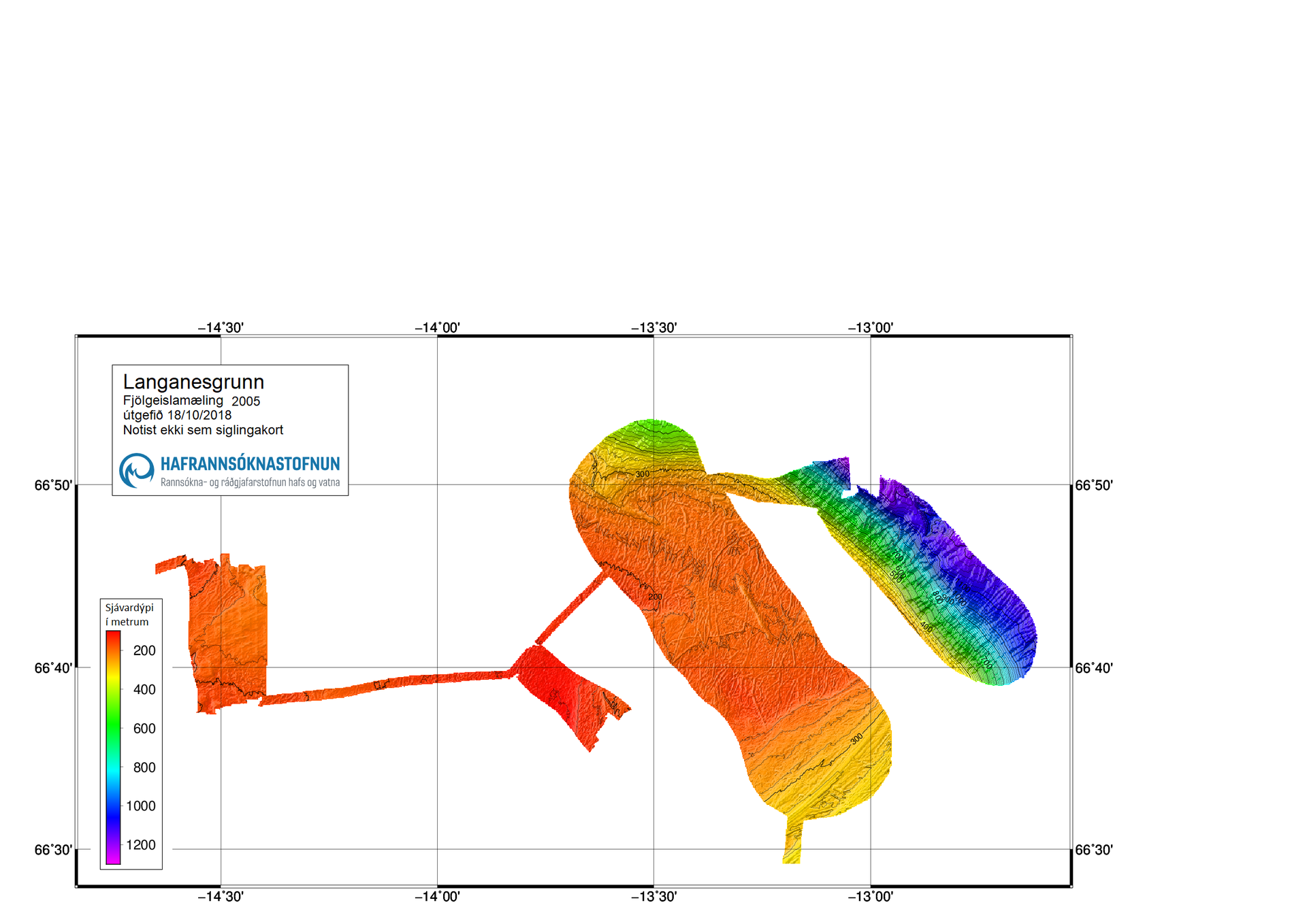 Heimilt er að birta fjölgeislagögn eða -kort sem fengin eru af þessari vefsíðu sé uppruna þeirra getið með eftirfarandi texta: Byggt á gögnum frá Hafrannsóknastofnun.