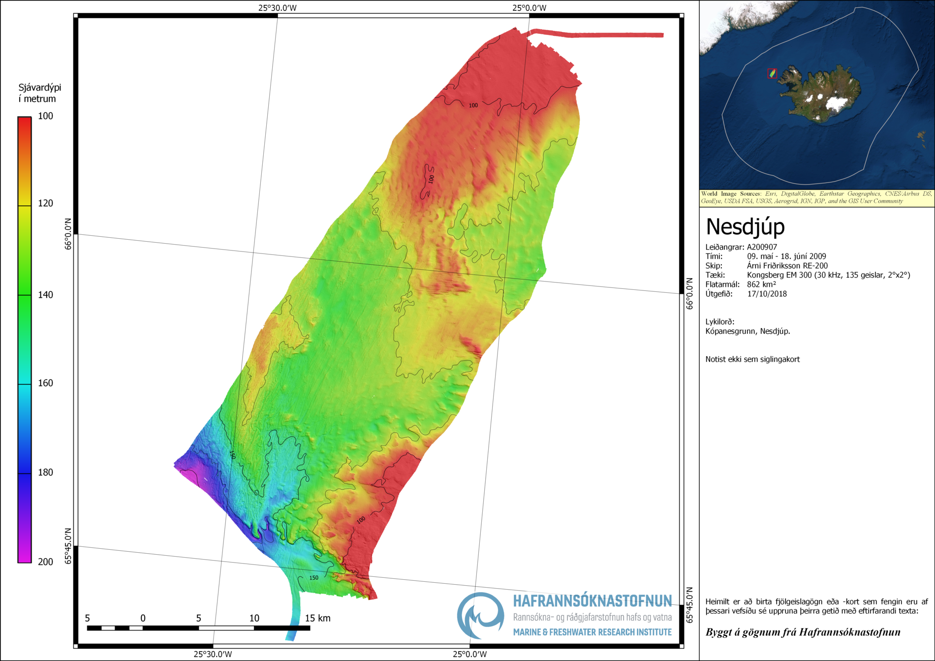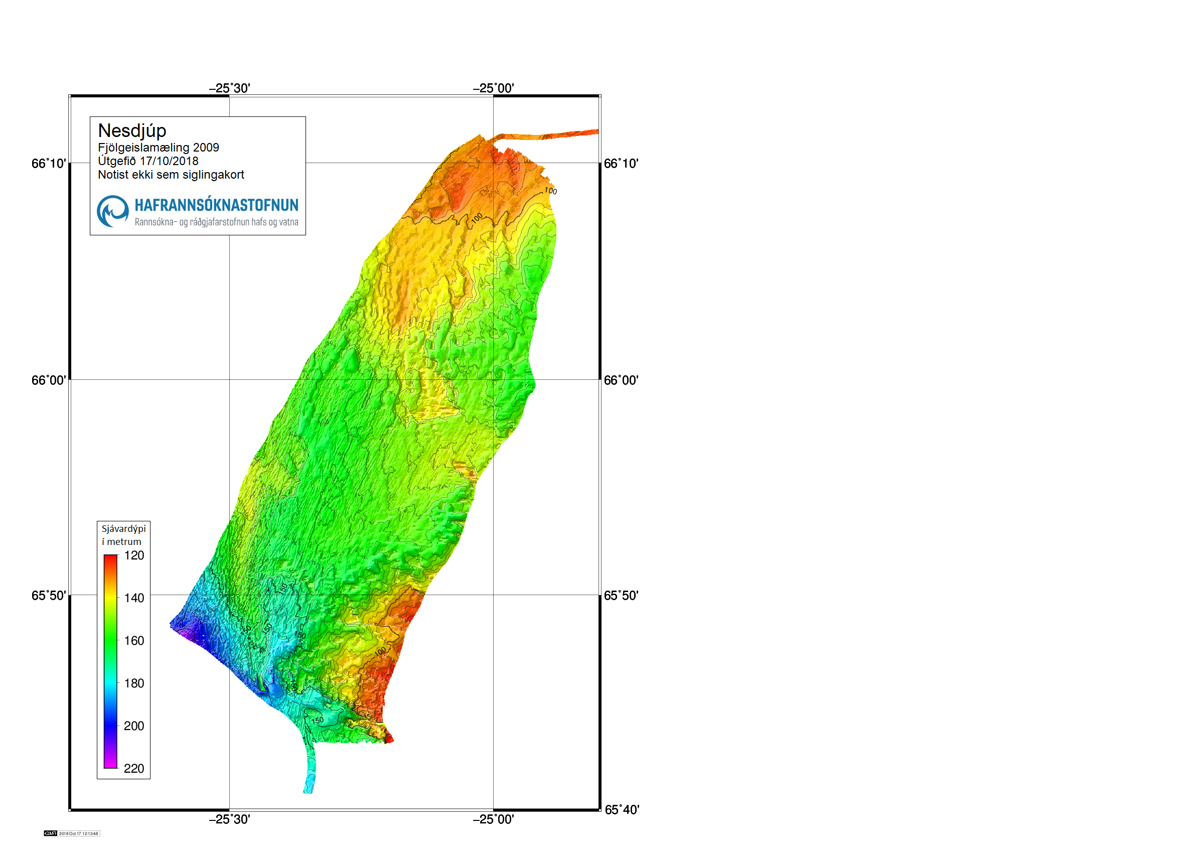 Heimilt er að birta fjölgeislagögn eða -kort sem fengin eru af þessari vefsíðu sé uppruna þeirra getið með eftirfarandi texta: Byggt á gögnum frá Hafrannsóknastofnun.