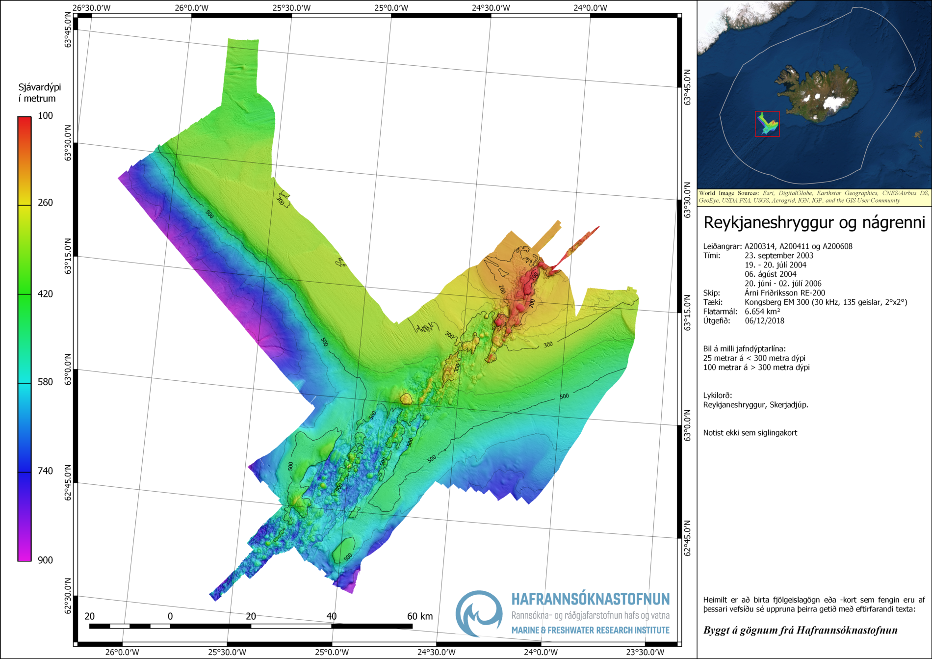 Heimilt er að birta fjölgeislagögn eða -kort sem fengin eru af þessari vefsíðu sé uppruna þeirra getið með eftirfarandi texta: Byggt á gögnum frá Hafrannsóknastofnun.