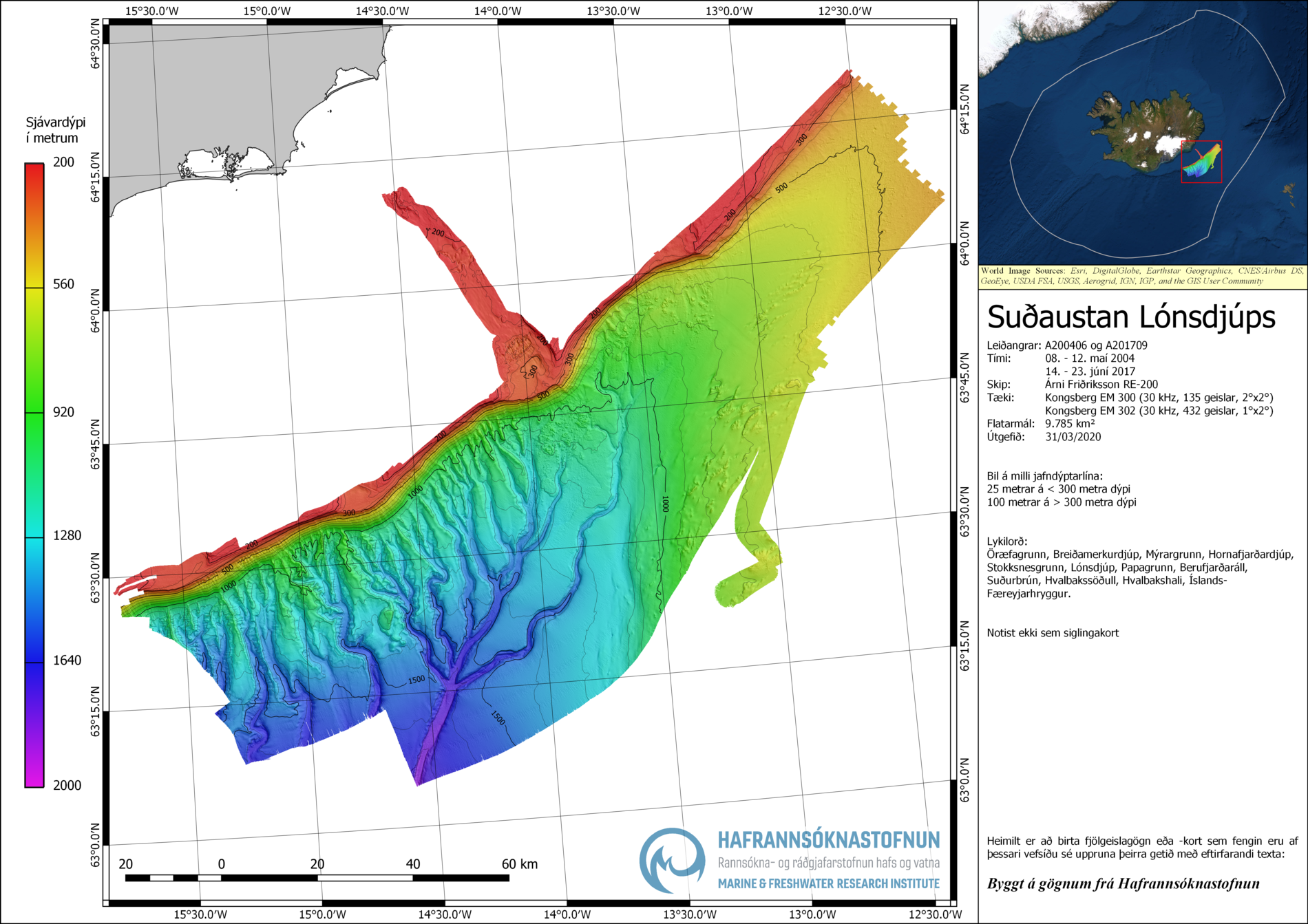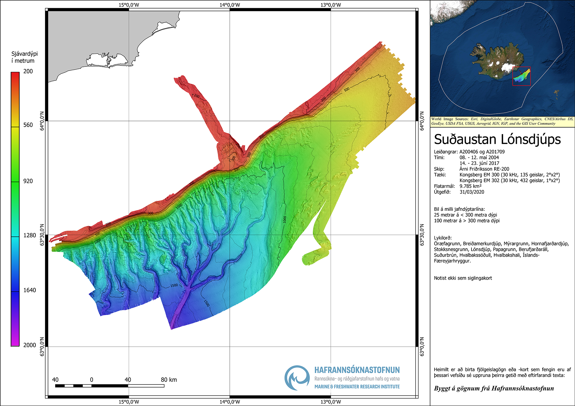 Heimilt er að birta fjölgeislagögn eða -kort sem fengin eru af þessari vefsíðu sé uppruna þeirra getið með eftirfarandi texta: Byggt á gögnum frá Hafrannsóknastofnun.