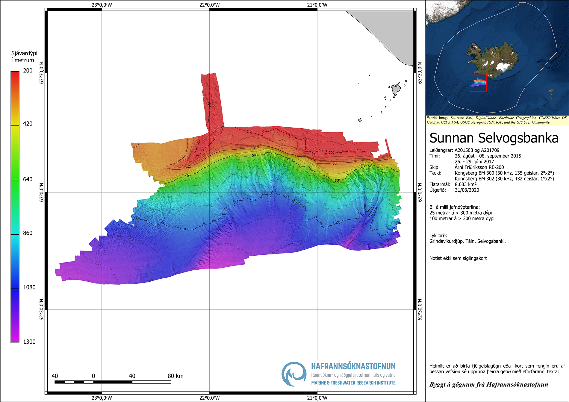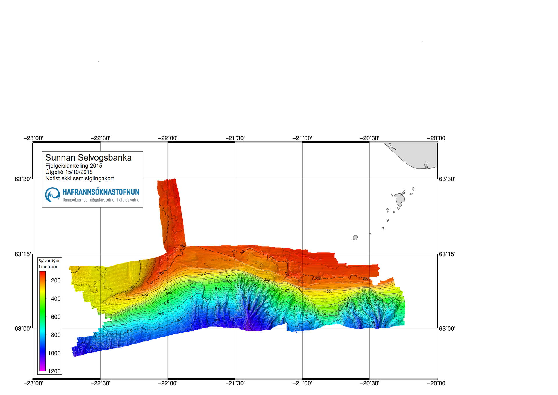 Heimilt er að birta fjölgeislagögn eða -kort sem fengin eru af þessari vefsíðu sé uppruna þeirra getið með eftirfarandi texta: Byggt á gögnum frá Hafrannsóknastofnun.