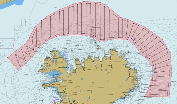 Mynd af fyrirhuguðum leiðarlínum skipa.