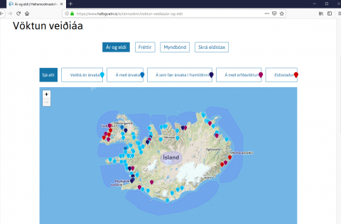 Fyrr í dag kynntu þeir Kristján Þór Júlíusson, sjávarútvegs- og landbúnaðarráðherra, Sigurður Guðjónsson, forstjóri Hafrannsóknastofnunar, og Ragnar Jóhannsson, sviðsstjóri fiskeldis og fiskiræktar á Hafrannsóknastofnun, nýja gátt á vef Hafrannsóknastofnunar sem kallast Vöktun veiðiáa.