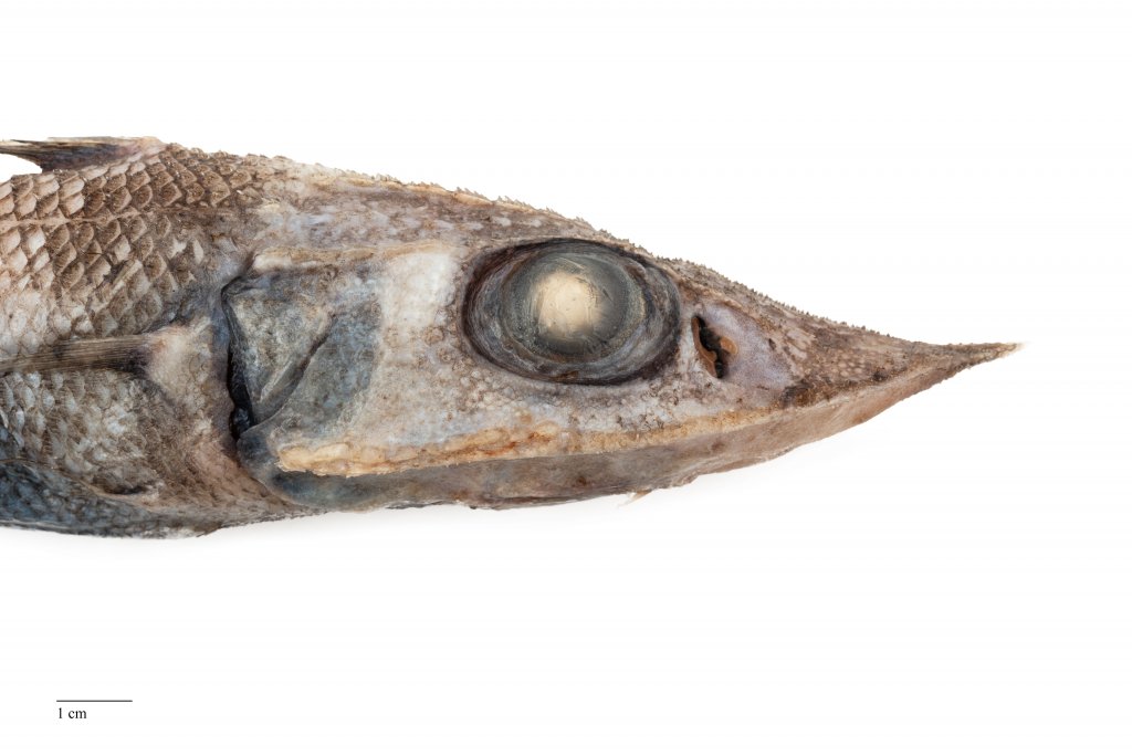 Litur er ljósgrár, neðraborð hauss ljóst. Greinilegur svartur hringur er umhverfis augu. Kok og tálknalok eru svört að innan. Fremri bakuggi gráleitur.